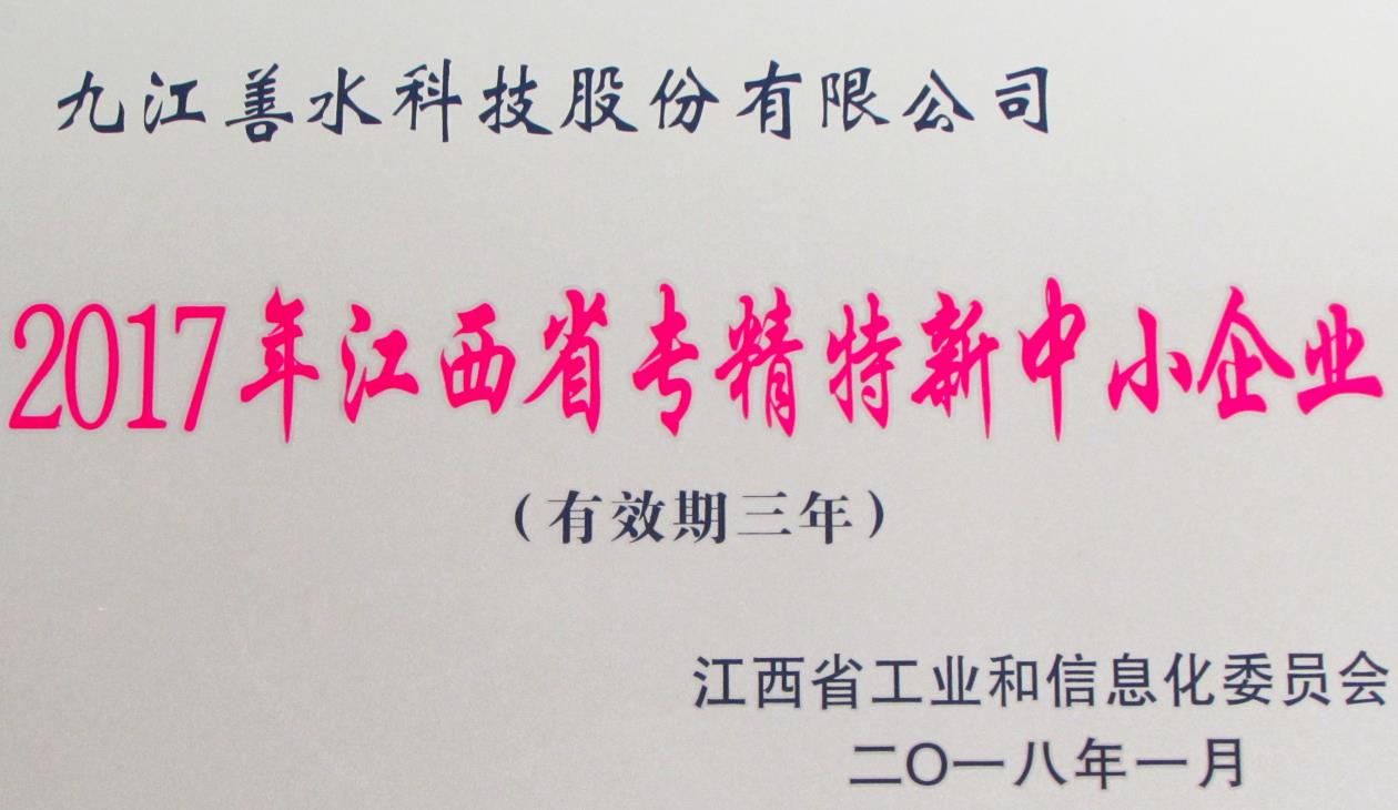 2017年度江西省專精特新中小企業(yè) 2018年度人才引進先進單位